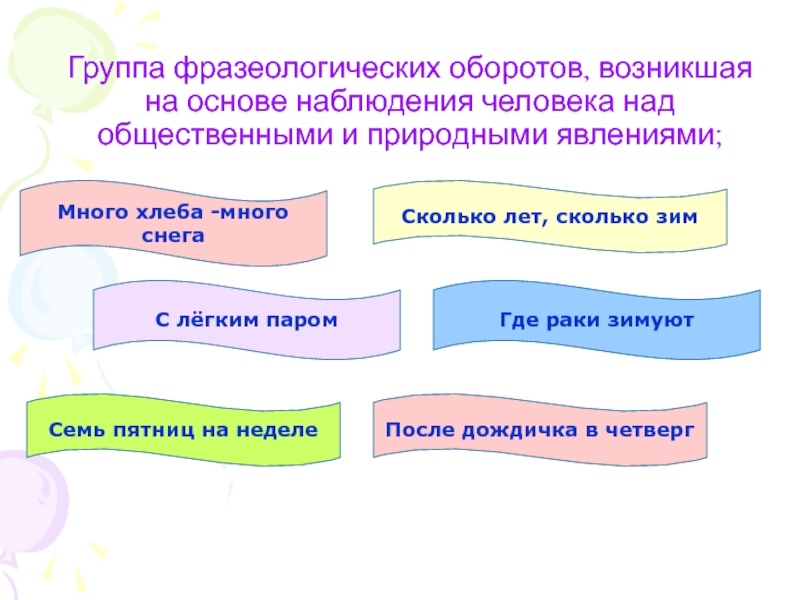Слайд 7Группа фразеологических оборотов, возникшая на основе наблюдения человека над общественными и