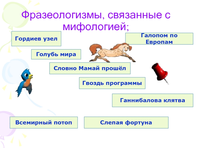 Слайд 8Фразеологизмы, связанные с мифологией;