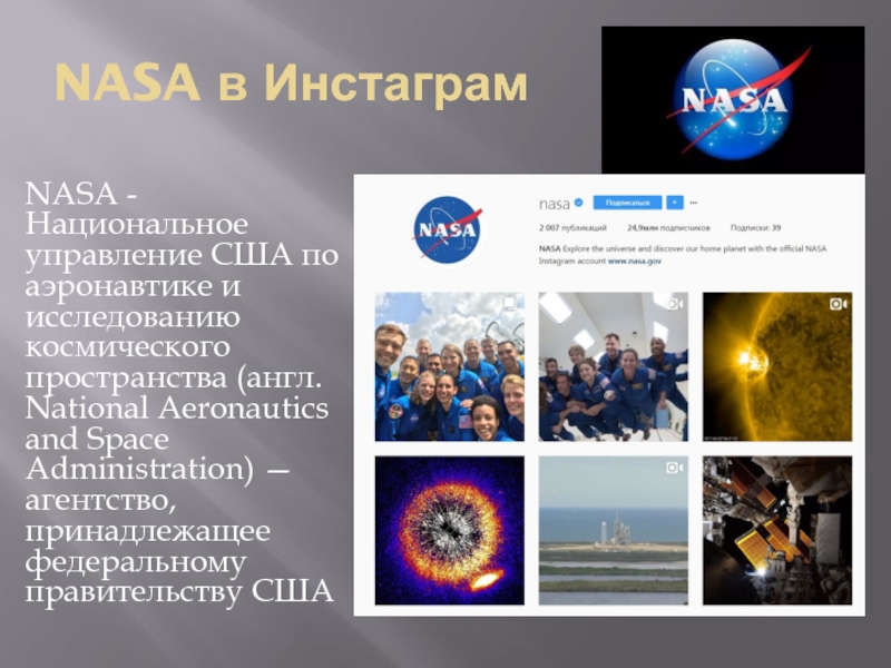 космического пространства (англ. National Aeronautics and Space Administration) — агентство, принадлежащее федеральному правительству США