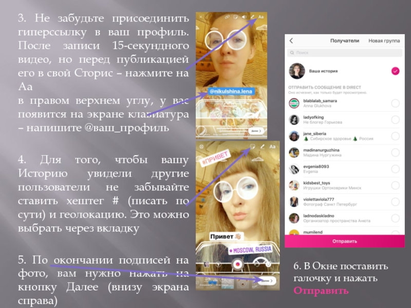 Слайд 73. Не забудьте присоединить гиперссылку в ваш профиль. После записи 15-секундного