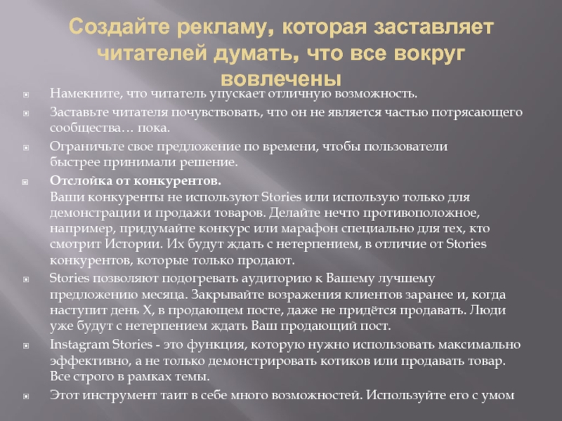 Слайд 20Создайте рекламу, которая заставляет читателей думать, что все вокруг вовлечены