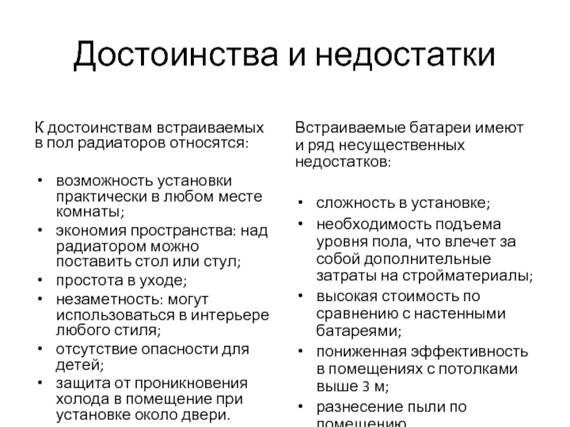 Слайд 16Особенности встраиваемых в пол радиаторов