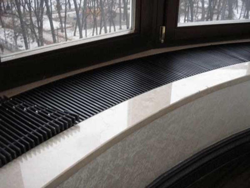 Внутрипольные радиаторы работают по принципу конвектора. Такой способ обогрева воздуха способствует поддержанию нужного уровня температуры, а также заметно сокращает расходы на отопление. Экономия происходит за счет более интенсивной циркуляции воздуха по сравнению с обычными батареями, которые закрепляются на стенах.