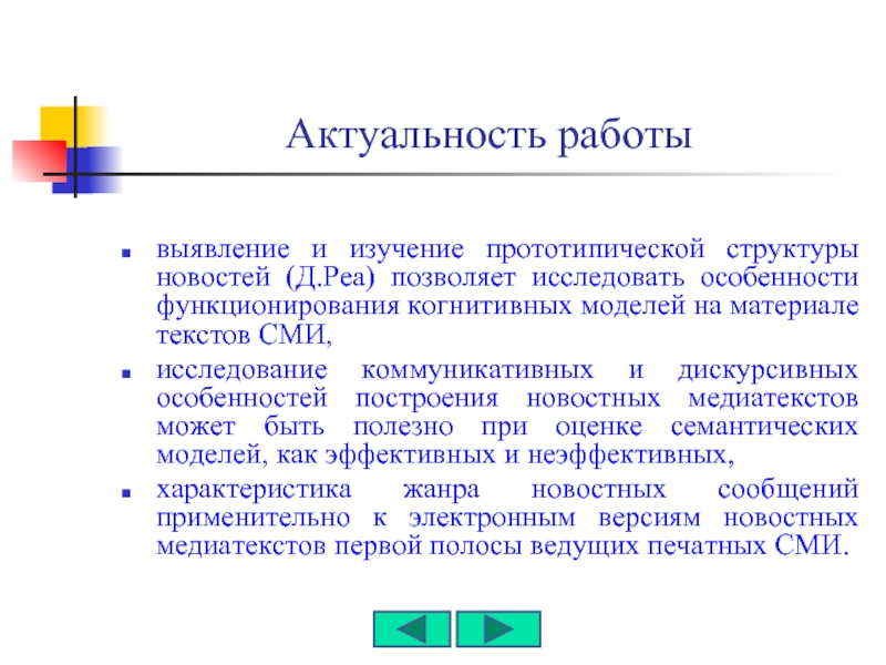 выявление и изучение прототипической структуры новостей (Д.Реа) позволяет исследовать особенности