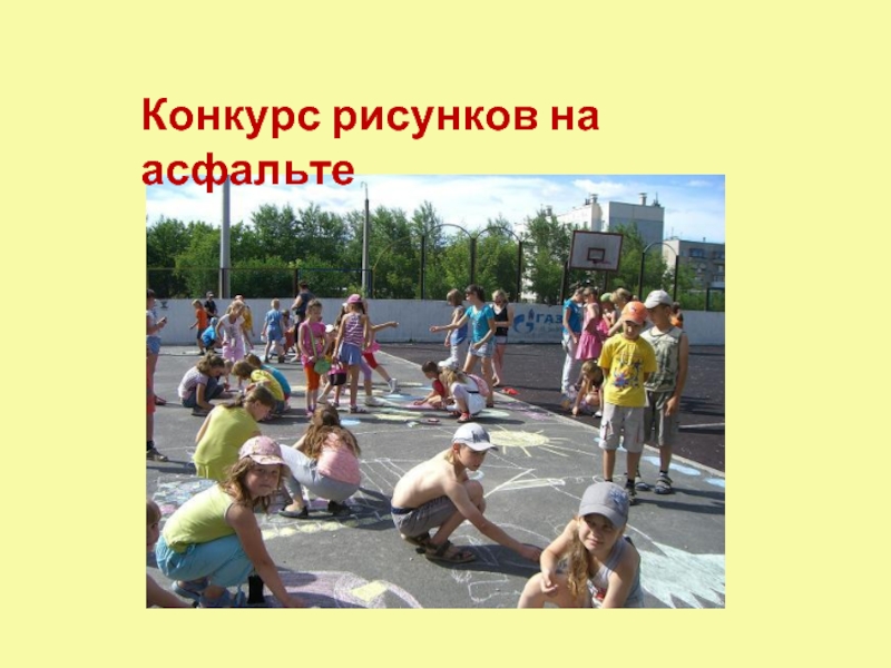 Слайд 13Конкурс рисунков на асфальте