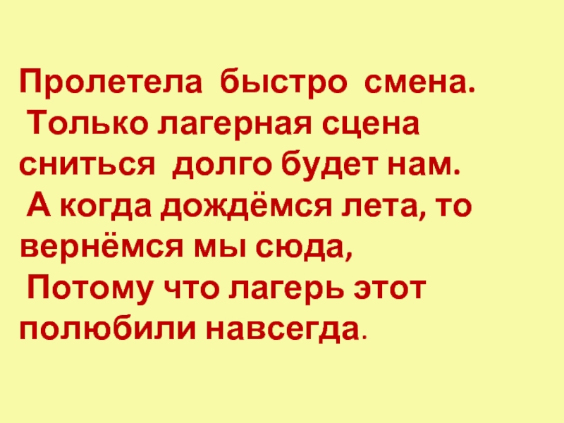Слайд 18Любим мы наш лагерь очень.