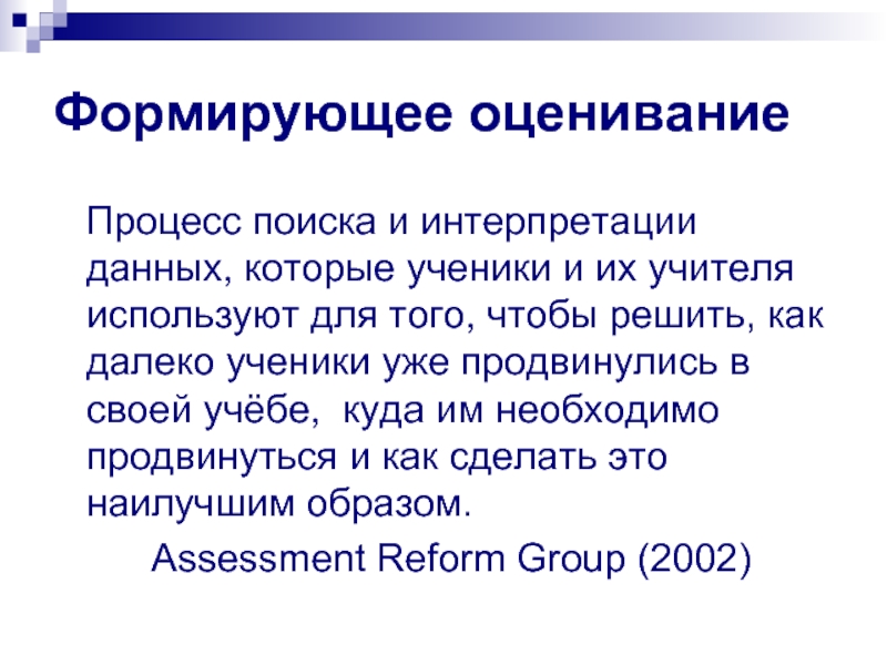 измерять их. Хотя качество формирующего оценивания заметно повысилось, оно остаётся слабым местом во многих школах (Управление по стандартам в образовании. Англия, 2002)