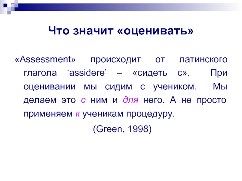 «Assessment» происходит от латинского глагола ‘assidere’ – «сидеть с».