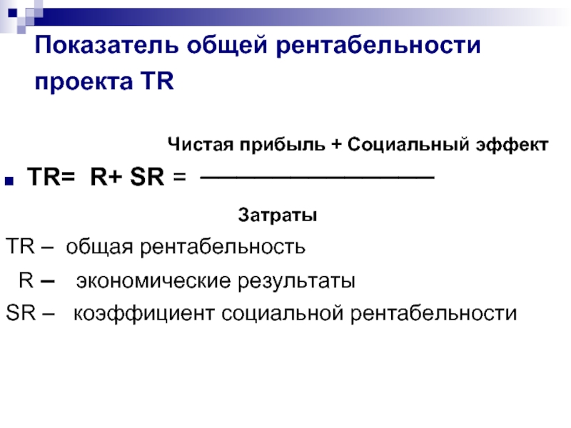 общей рентабельностью, т.е. когда финансовые убытки от проекта перекрывают социальные выгоды