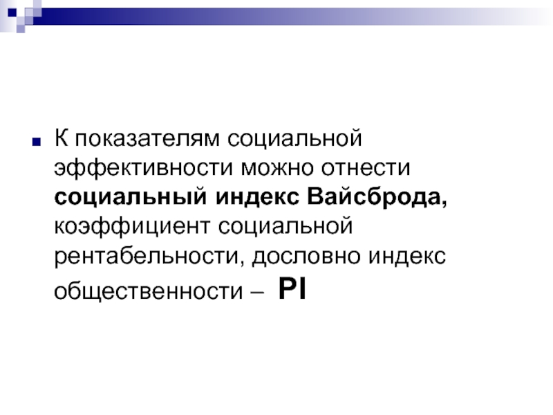 К показателям социальной эффективности можно отнести социальный индекс Вайсброда, коэффициент социальной