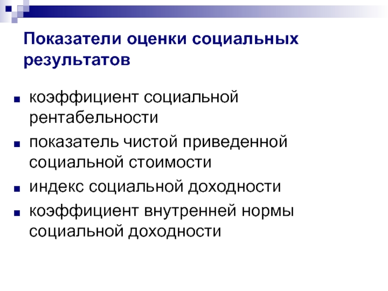 Помимо экономической оценки, большое значение придается анализу социальных результатов, которые отражают