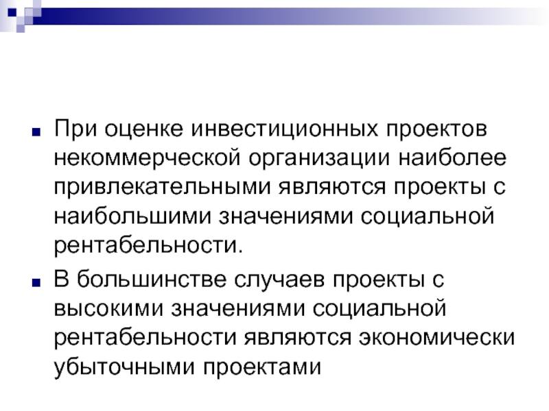 Слайд 13Оценка инвестиционных проектов некоммерческой организации