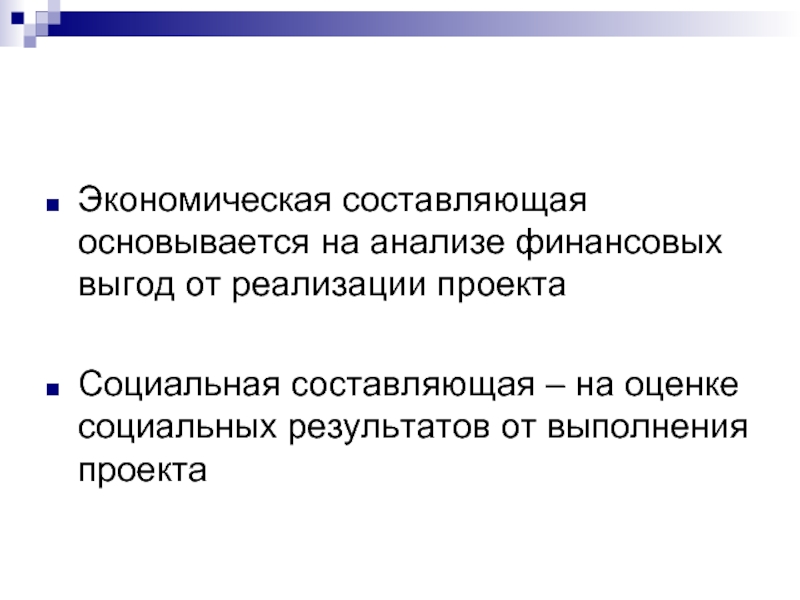 Экономическая составляющая основывается на анализе финансовых выгод от реализации проекта