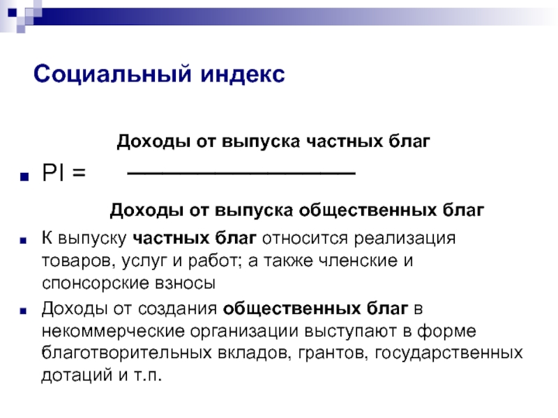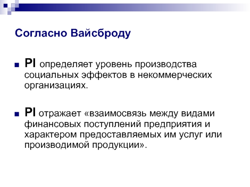 PI определяет уровень производства социальных эффектов в некоммерческих организациях.