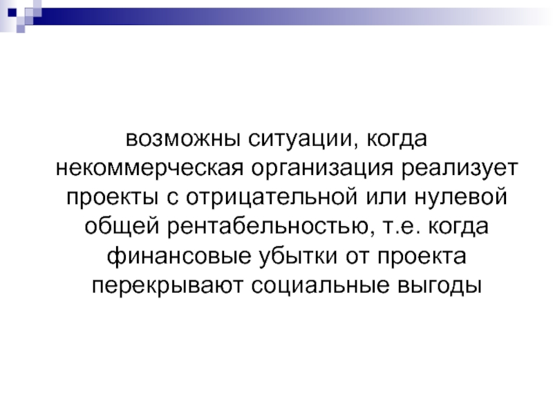 возможны ситуации, когда некоммерческая организация реализует проекты с отрицательной или нулевой