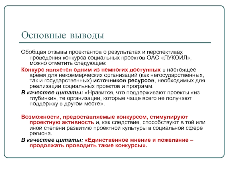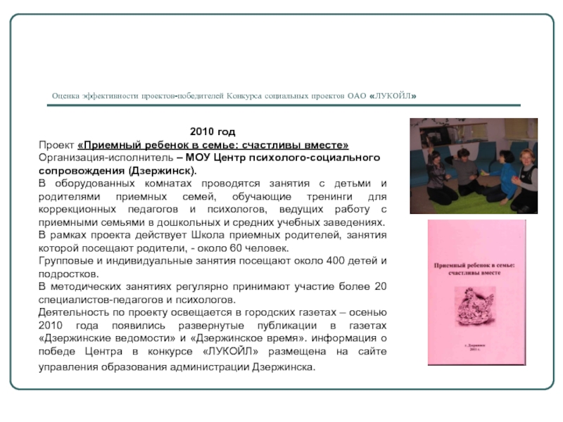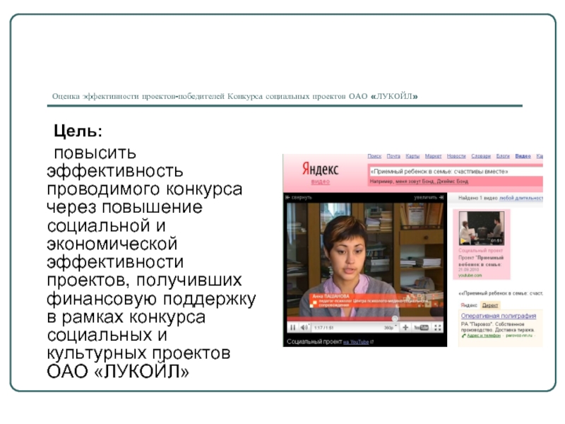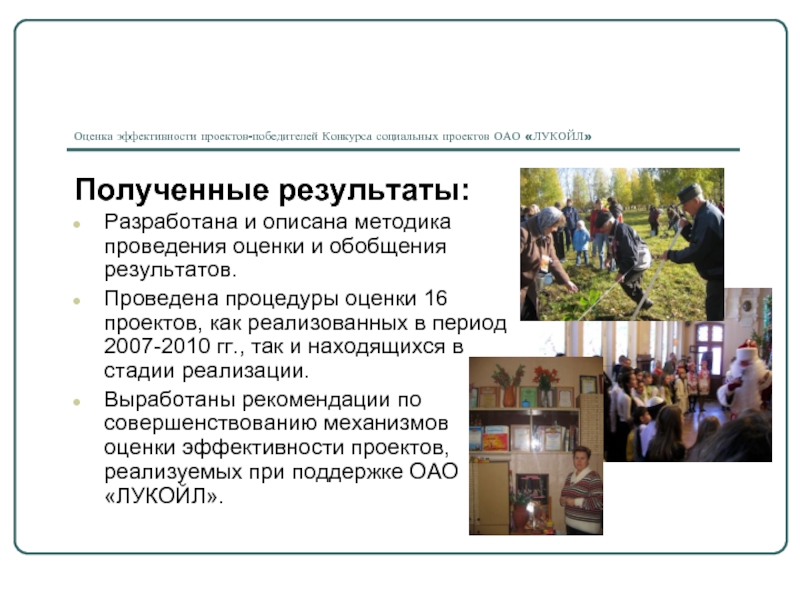 Оценка эффективности проектов-победителей Конкурса социальных проектов ОАО «ЛУКОЙЛ»