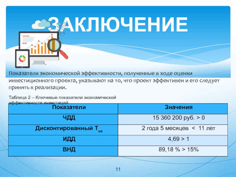 в работе проведён анализ и дана оценка эффективности проекта, который рассматривается на принятие в данный момент