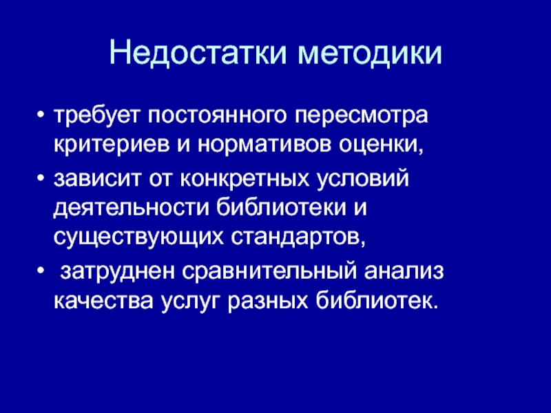 предполагает комплексный характер рассмотрения качества базовых библиотечных услуг с учетом позиций потребителя, современных профессиональных требований и факторов, влияющих на качество библиотечных услуг;