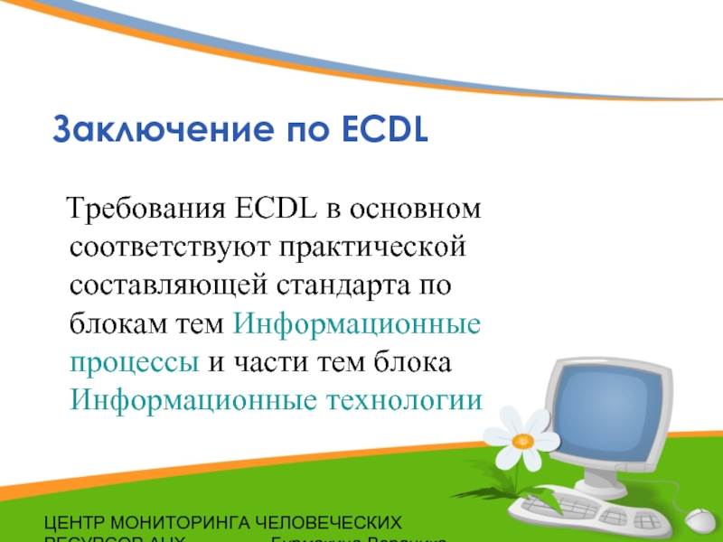 Требования ECDL в основном соответствуют практической составляющей стандарта по блокам тем Информационные процессы и части тем блока Информационные технологии