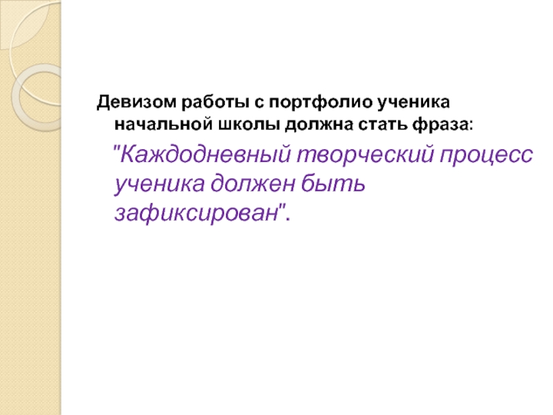 Слайд 4Девизом работы с портфолио ученика начальной школы должна стать фраза: