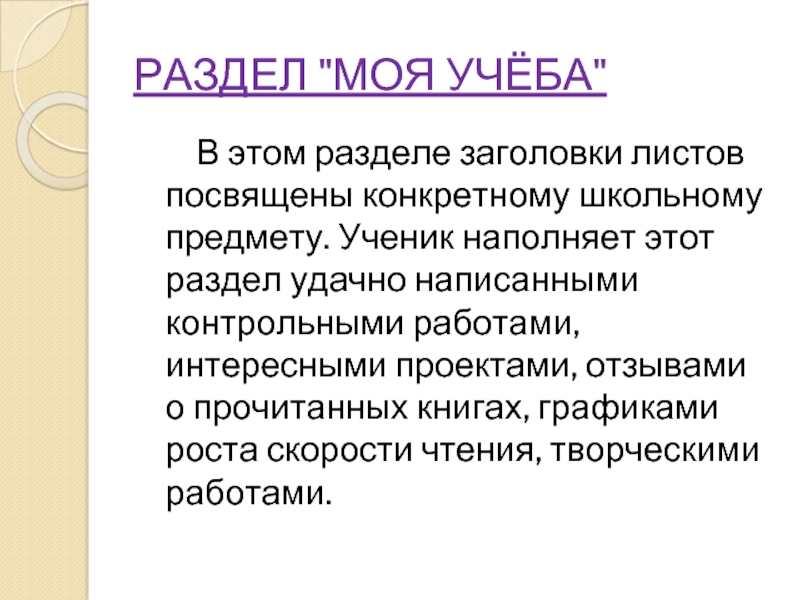 Слайд 10РАЗДЕЛ "МОЯ УЧЁБА"