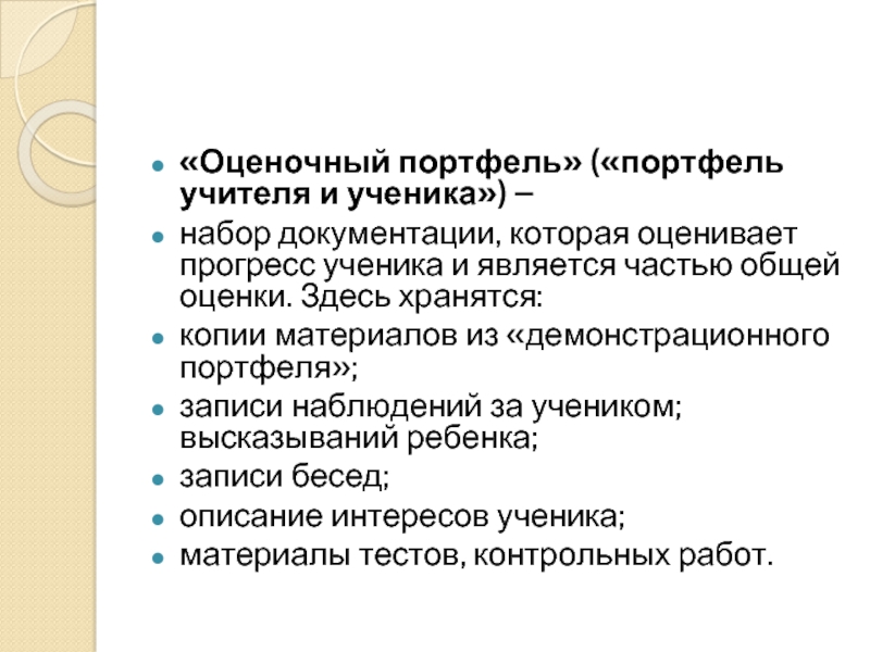 Слайд 3«Оценочный портфель» («портфель учителя и ученика») –