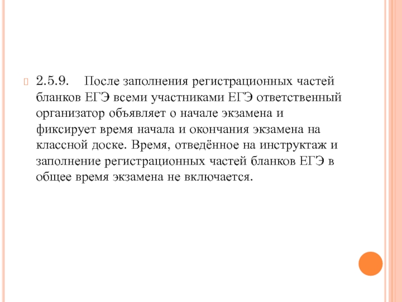 2.5.9. После заполнения регистрационных частей бланков ЕГЭ всеми участниками ЕГЭ ответственный организатор