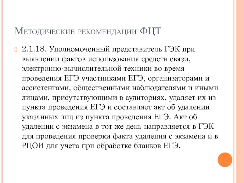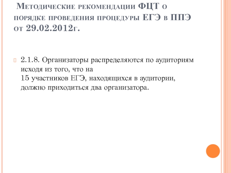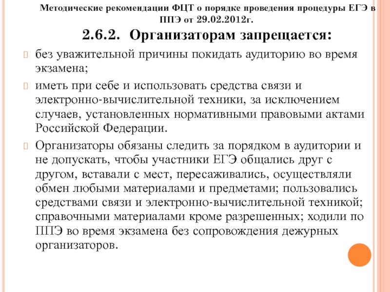 Слайд 5 Методические рекомендации ФЦТ о порядке проведения процедуры ЕГЭ в ППЭ