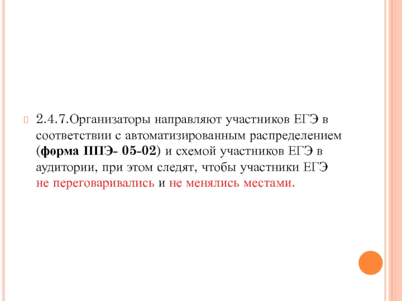2.4.7.Организаторы направляют участников ЕГЭ в соответствии с автоматизированным распределением (форма ППЭ-