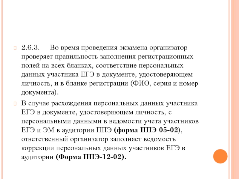 2.6.3. Во время проведения экзамена организатор проверяет правильность заполнения регистрационных полей на