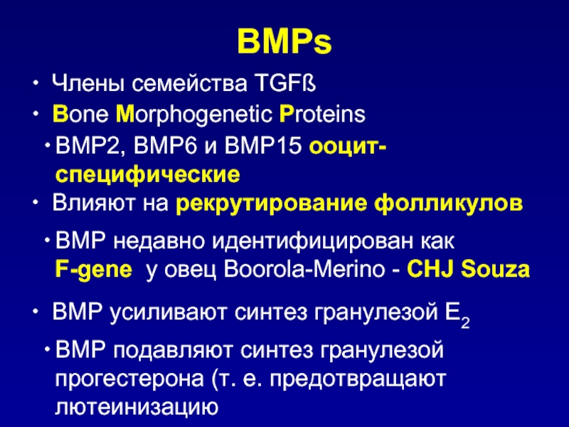 BMP подавляют синтез гранулезой прогестерона (т. е. предотвращают лютеинизацию