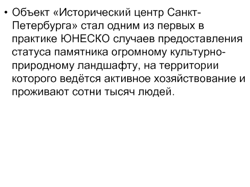 Объект «Исторический центр Санкт-Петербурга» стал одним из первых в практике ЮНЕСКО