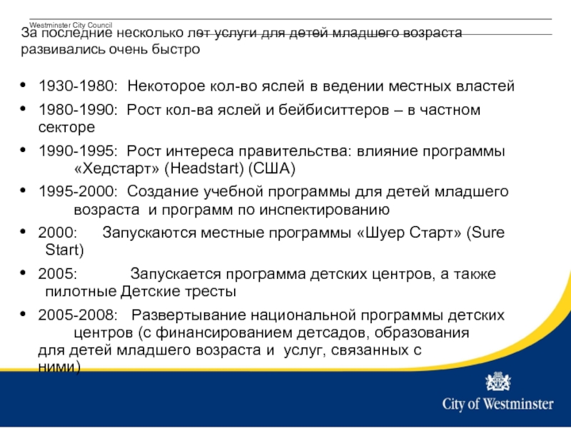 1930-1980: Некоторое кол-во яслей в ведении местных властей