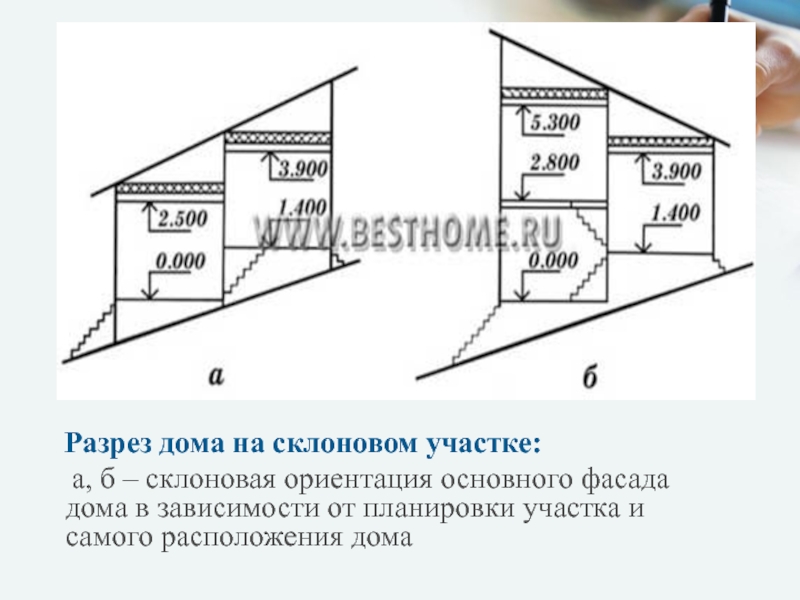 Слайд 43Появляется на всем участке сырость. Строительство домов на склоновом участке следует