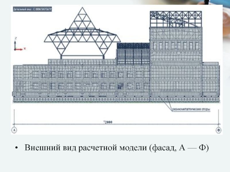 Слайд 28 Внешний вид расчетной модели по варианту 2 (сейсмоусиление с применением