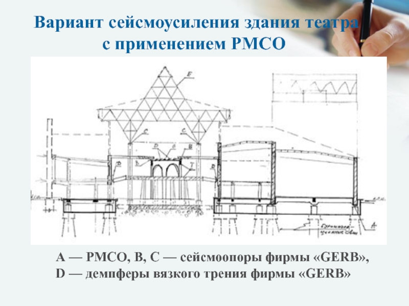 Слайд 24Вариант сейсмоусиления здания театра с применением РМСО