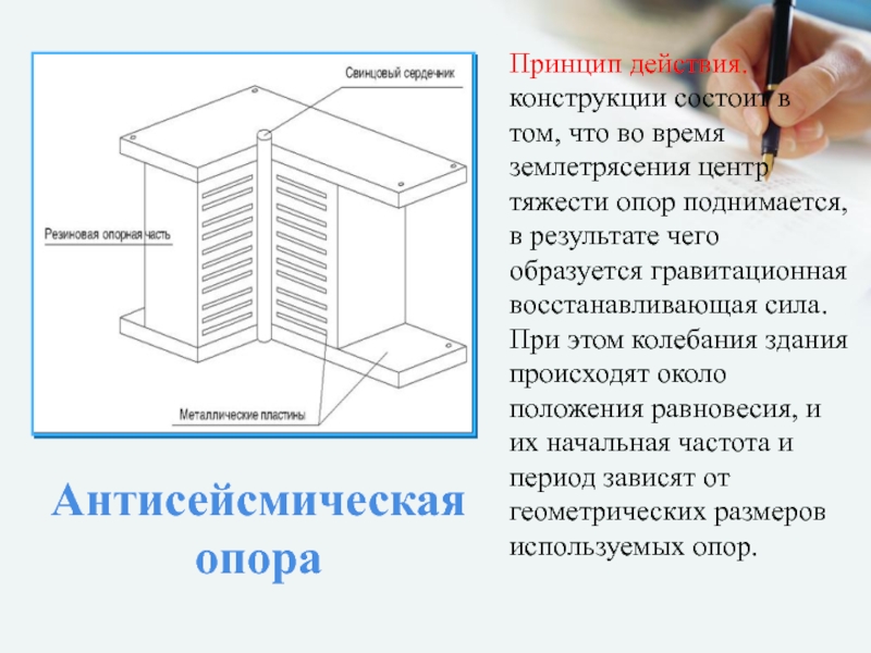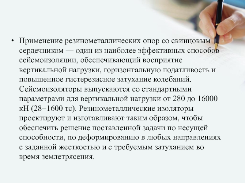 Слайд 21Применение резинометаллических опор со свинцовым сердечником — один из наиболее эффективных