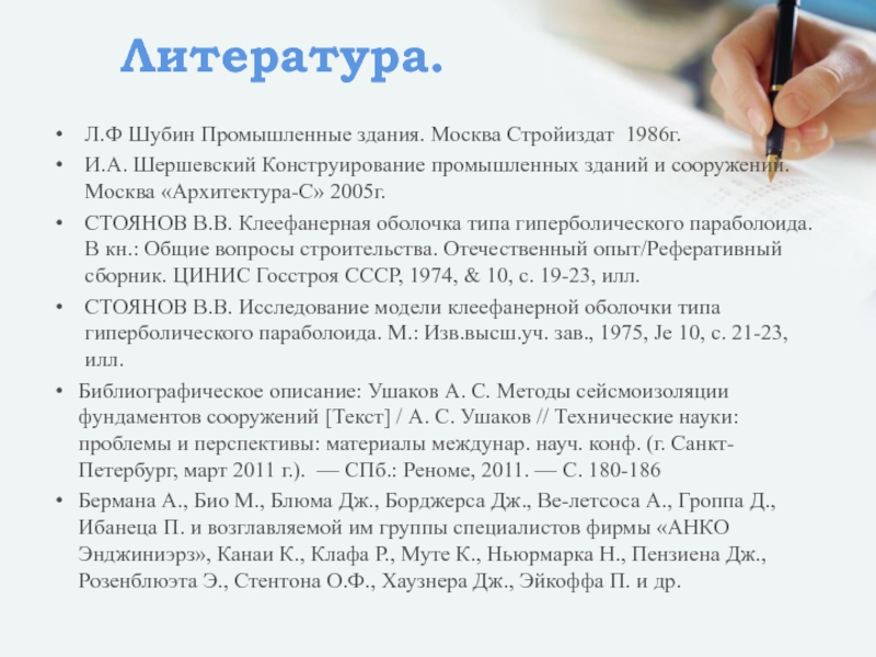 СТОЯНОВ В.В. Клеефанерная оболочка типа гиперболического параболоида. В кн.: Общие вопросы строительства. Отечественный опыт/Реферативный сборник. ЦИНИС Госстроя СССР, 1974, & 10, с. 19-23, илл.