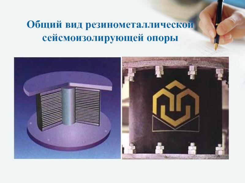 Слайд 22Общий вид резинометаллической сейсмоизолирующей опоры