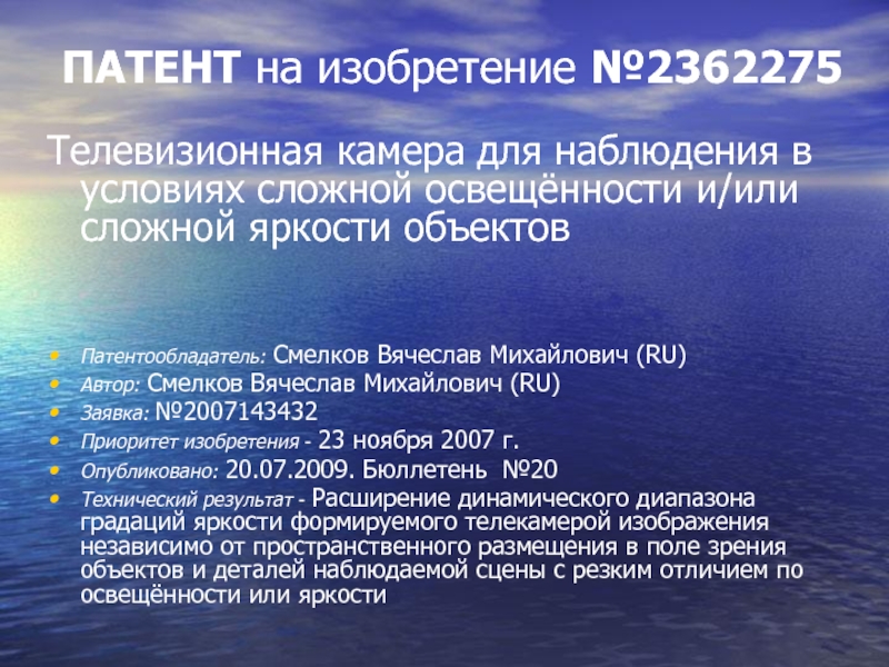 Слайд 2ПАТЕНТ на изобретение №2362275