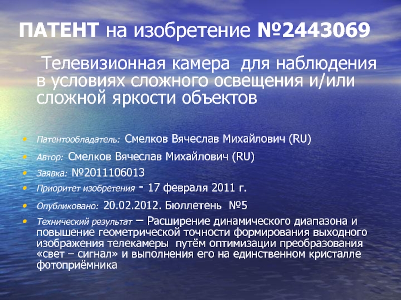 Слайд 14ПАТЕНТ на изобретение №2443069