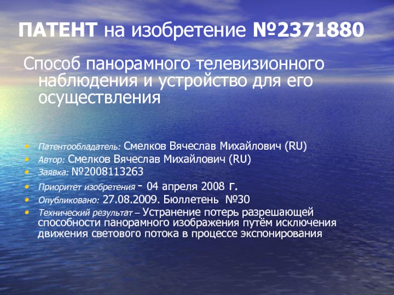 Слайд 4ПАТЕНТ на изобретение №2371880