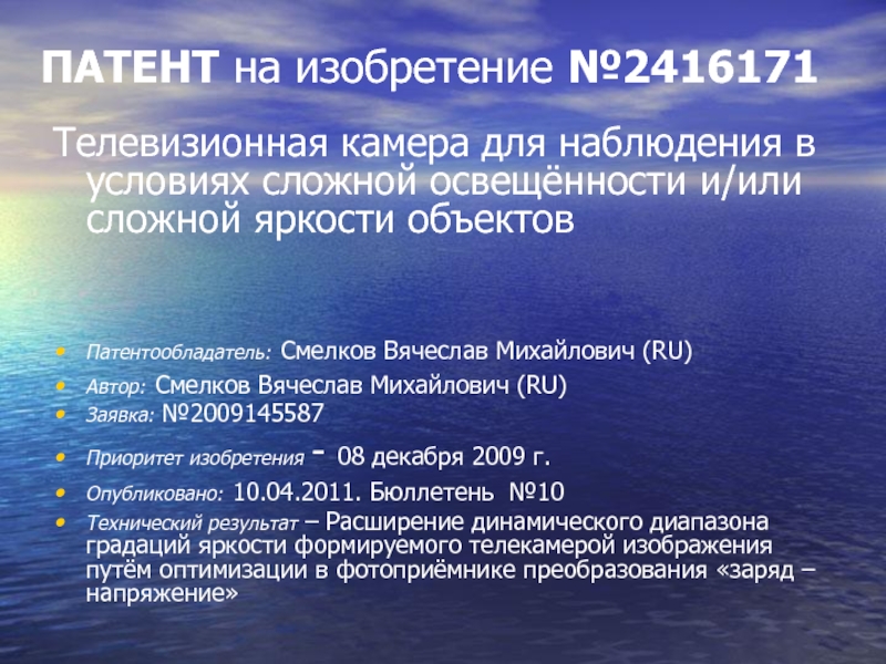 Слайд 8ПАТЕНТ на изобретение №2416171