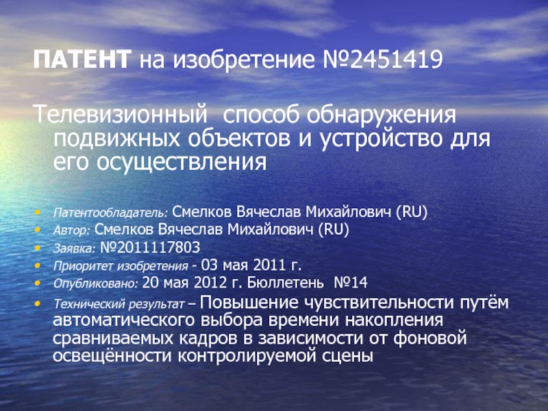Слайд 19ПАТЕНТ на изобретение №2451419