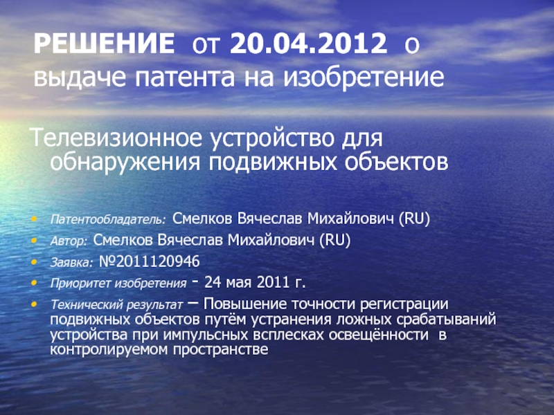 Слайд 20РЕШЕНИЕ от 20.04.2012 о выдаче патента на изобретение