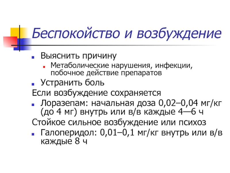 Галоперидол: 0,01–0,1 мг/кг внутрь или в/в каждые 8 ч