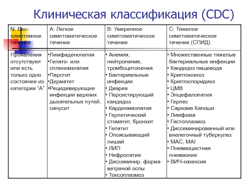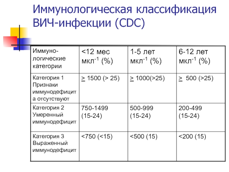 Слайд 6Иммунологическая классификация ВИЧ-инфекции (CDC)