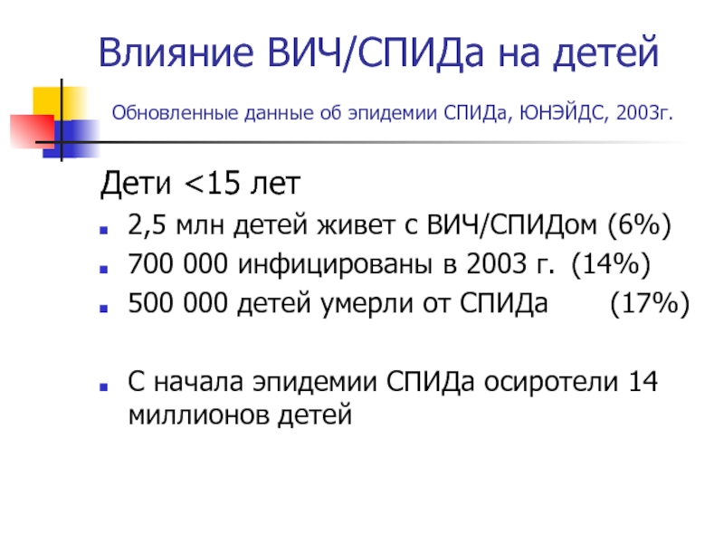Слайд 3Влияние ВИЧ/СПИДа на детей