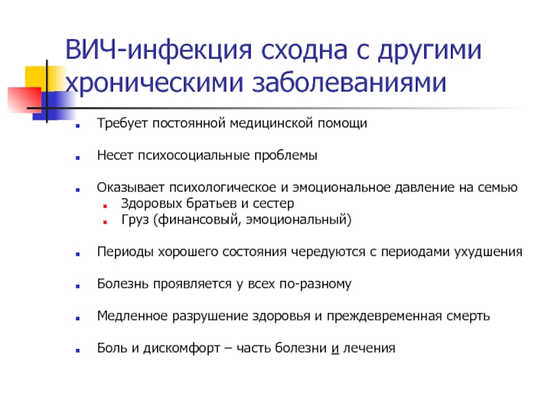 Слайд 12ВИЧ-инфекция сходна с другими хроническими заболеваниями