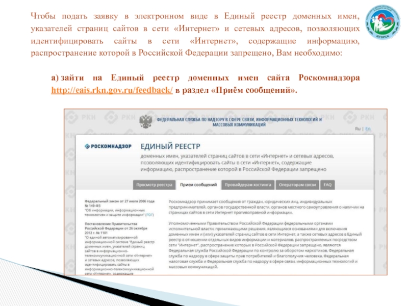 Узнать ответы на типичные вопросы, которые возникают при обращении в Роскомнадзор, Вы можете на специальной вкладке http://eais.rkn.gov.ru/faq/